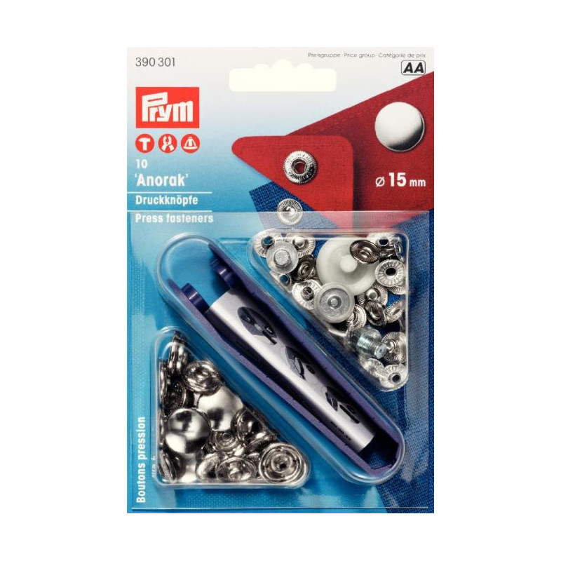 10 anorak trykknapper. Diameter 15mm.