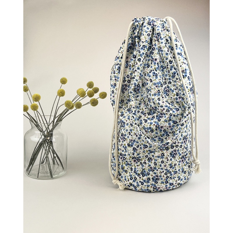 Lækker stor vatteret projekttaske i Libertylignende bomuldsstof. Tasken har skulderhanke samt løbegang.