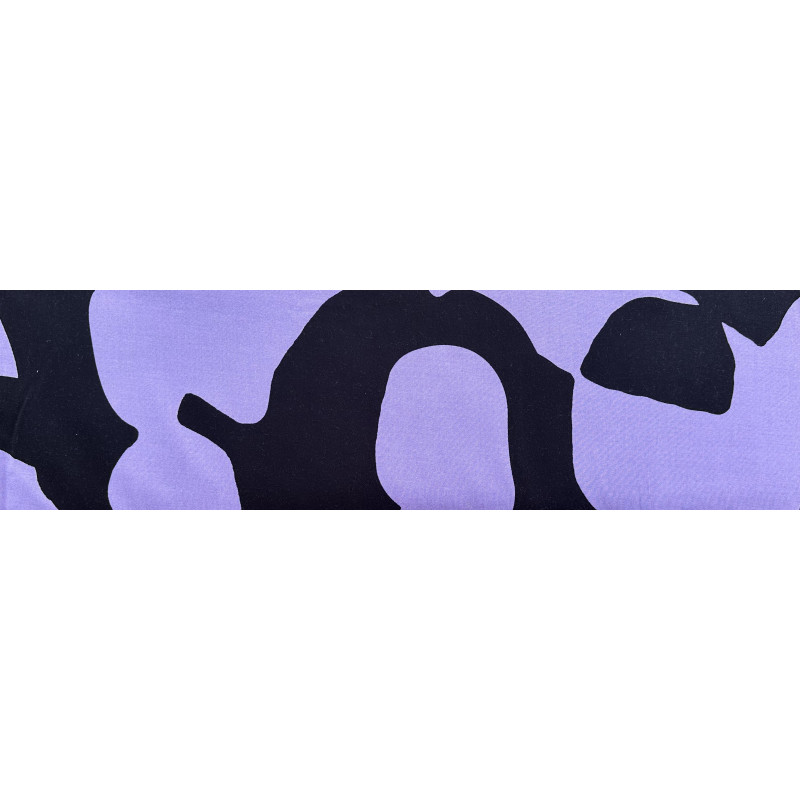 Smukt grafisk mønster i sort og Lilla. Satinvævet viskose 97% elastan 3% med let stræk i.